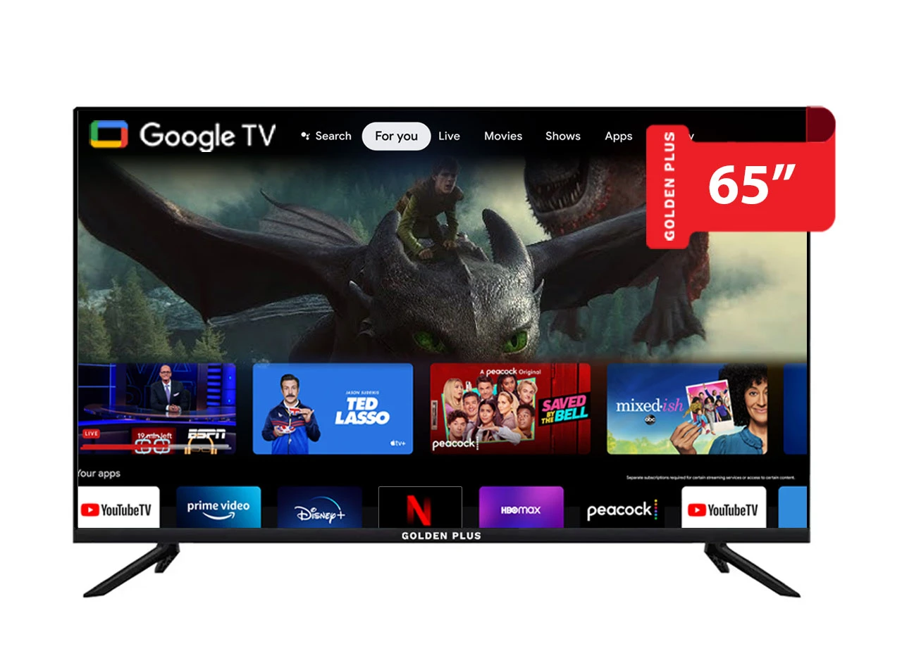 Upgrade your home entertainment with the Golden Plus 65-inch Google TV—because a bigger screen means a bigger, better experience!